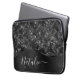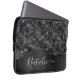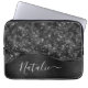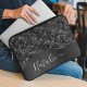 Pas deze zwarte geborstelde metalen en glamoureuze, glitter gelaagde laptophoes eenvoudig aan met uw eigen naam.