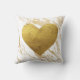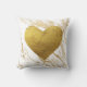 Decoratief gooien kussen in een faux gouden metalen marmer achtergrond met gouden folie hart over het midden. Het ontwerp wordt herhaald aan beide zijden van kussen.