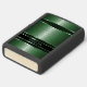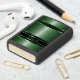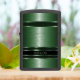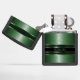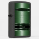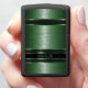 Afbeelding van een groene metalen textuur met geometrische accentstrepen.