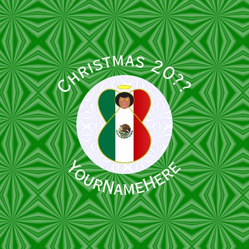 For your Mexican Christmas decor, this snow globe features an angel wearing the flag of Mexico. Add a name and year to personalize. Or, change the text to whatever you like. Lovely Christmas gift.