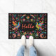 Personaliseer en verwelkom de Gast met deze unieke "Een van een soort" Mexicaanse Otomi Doormat! Het is voorzien van een Mexicaanse Otomi-druk met vogels en bloemen in levendige heldere kleuren...op een zwarte achtergrond!