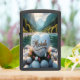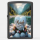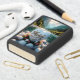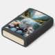 Een wit hart met de naam Michelle rust tussen gladde rivierstenen, omgeven door bloeiende tulpen, in een schilderachtig vallei.