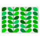 Notitiekaart in een Mid-Century Modern-Deens geïnspireerd textielpatroon van gestileerde bladeren - groene tinten, van lichte limoen tot donkere smaragd, op een witte achtergrond