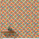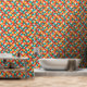 Dit is een stijlvol middeleeuws modern abstract halve cirkelpatroon in sinaasappel, rood, blauwgroen en bruin. Het is geweldig uitziend behang voor iedereen die van retro geometrische design houdt