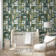 Modern Abstract Patroon in het midden van de eeuw in saga groen
