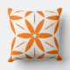 Energize your space with this orange geometric floral throw pillow featuring a mid-century modern starburst pattern.