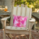 Modern geometrisch mozaïek van geschetste driehoeken in pastel tot diep fuchsia roze, bordeauxrood en wijnrood op een rozen roze achtergrond buitenkussen