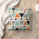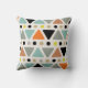 Een stijlkunstpatroon van 1950 met driehoeken en stippen in vele kleuren zoals oranje, goud, geel, hemelblauw, leisteen grijs en zwart.