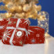 The design displays a festive and busy repeating pattern. It features a rich, solid blue background covered with numerous snowflakes of various sizes and designs. The most prominent snowflakes are large and ornate, colored in shades of white and light gray with star-like points, some of which are slightly tinged with subtle hints of green and blue. Interspersed among the larger designs are smaller, simpler snowflakes and tiny, stylized white and red flower shapes, adding to the overall dense and celebratory feel of the winter holiday motif.