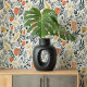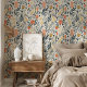 Midcentury Boho Bloemen Koraal Mosterd Blauwgroen Behang