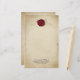Dit op maat gemaakte briefpapieren papier heeft een middeleeuws thema. De achtergrond is een vervaagd perkament papier ontwerp dat lijkt op een middeleeuwse rol. Een gouden lijst grenst aan het papier. Bovenaan wordt een rode wasverzegeling geplaatst met een initiaal. Een voorbeeldnaam en -adres worden onderaan afgedrukt. U kunt het briefpapier personaliseren om uw eigen initiaal en aangepaste tekst op te nemen.