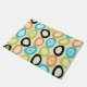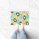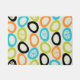 Een patroon van kleurrijke vormen die lijken op stenen vormen dit atomaire, eeuwengeïnspireerde abstracte kunstontwerp uit de jaren vijftig. De kleuren zijn chartreuse, oranje, hemelsblauw en zwart.