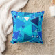 Mid-Century Moderne geometrische mozaïek van geschetste driehoeken in schoppen kobalt, marine, cerulean en sky blauw op een middelmatige kerelblauwe achtergrond werpen kussen
