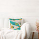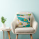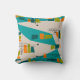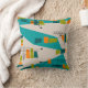 Moderne middeleeuwse Pillow, ontwerp in blauwgroen, kalkgroene en oranje boommerangs en atoomdesign. Ideaal voor elk modern decor uit het midden van de eeuw.