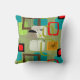 Mid-Century Modern Pillow, abstract ontwerp in zwart, rood, blauwgroen en grijs op een olijfgroene achtergrond. Ideaal voor elk modern decor uit de midden eeuw.