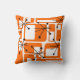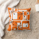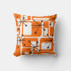 Deze kussen zijn bedekt met oranje moderne rechthoeken uit het midden van de eeuw en zwarte sterrenbursten.