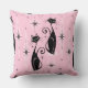 Voor de kattenliefhebbers, mijn oorspronkelijke vectorillustratie van gestroomlijnde zwarte katten, starbursts en diamanten in middeleeuwse atoomstijl, in zwart en bleek roze op een koele roze achtergrond, met gesimuleerde stof graan.