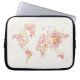 © Danhui Nai / Wild Apple. Roze, blauwe en gele bloemen op een kaart van het silhouet van de wereld