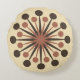 Dit ronde kussen is voorzien van mod Mid Century modern style starburst motieven in rijke bruine en warme klei op een bleke geelbruine achtergrond tint.