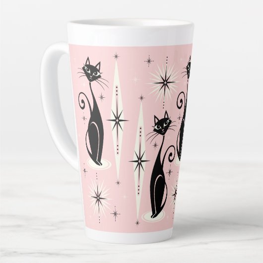 Midden-eeuwse gemiddelde retro atoomkatten op warm latte mok (Rechts)Midden-eeuwse gemiddelde retro atoomkatten op warm latte mok (Rechterhoek)Midden-eeuwse gemiddelde retro atoomkatten op warm latte mok (Voorkant)