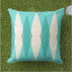 Dit Mid Century Modern Argyle Outdoor Sierkussen is voorzien van een levendige, turkooisachtergrond en een patroon van gemene, doorschijnende blauwgroen diamanten die grotere, roomdiamanten overdekken met gouden kleurige, ruimtesuikers. Deze minimalistische geïnspireerde, gedeconstrueerde argyle is een simplistische terugval van het grotere atoomtijdperk dan het leven dat het decoratieve landschap van de jaren vijftig en zestig domineerde. Dit kitschy ontwerp doet denken aan alles, van de bowlingsteegjes van de Palm Springs tot de televisieschermen die je bij je oma gebruikte.