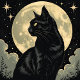 Retro zwarte kat met halve maan - klassieke Halloween-stijl voor uitnodigingen, t - shirts en prints.