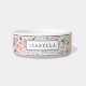 Pamper je pooch met onze gepersonaliseerde hondenkom, met een waterverf floreel patroon van perzikerpels, wazige roze rozen en roze witte hydrangea met lusteloze grijze accenten. Pas je aan met de naam van je hond aan de voorkant in het rijke blauw van middernacht.
