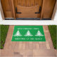 Sneeuwrijke winterbomen op een grillige deurmat met uw adres. Help die bezorgers om het pakket op de juiste veranda te laten vallen. Haal er ook een voor je buren! Welkom uw gasten met Groeten van het Seizoen.