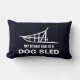Tekst die "MIJN ANDERE AUTO IS EEN DOG SLED" en een wit silhouet met een doorschijnende achtergrond.