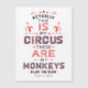 Het ontwerp van Retro Circus Style in rood en marinesblauw op wit, met sterren, spandoeken en designaccenten bevat woorden in de stijl van het state fair festival typografie: "Dit is mijn Circus, dit zijn mijn apen. Geniet van het Show."