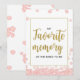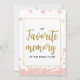 Dit moderne bloemige "Mijn favoriete herinnering aan de bruid" bruidsshower bord heeft een roze bloemige achtergrond met gouden glitter spetters. De tekst is geschreven in een mix van een speels kalligrafie lettertype en een modern sans serif lettertype. Aangepaste gepersonaliseerde favoriete herinnering aan de bruid kaarten zijn beschikbaar.