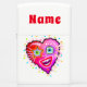 MIJN HART ZAL OP EEN glimlach, hedendaagse kunststijl emoji glijden als een rood hartvormig emoticongezicht in de heldere, kleurrijke Valentijn kleuren van rood, knuppels, magenta's en purples, voorzien van andere complementaire kleuren.