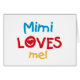 Mimi Loves Me T-shirts, kaarten, stickers, bodysuits tassen en meer met kleurrijke rode, gele en blauwe tekst en hartontwerp. Deze Mimi Loves me kleding en cadeau items zullen mimi glimlachen!