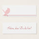 Ces petits copains se présentent comme des adeptes de cadeaux d'accueil ou comme des cartes de table pour le tableau de mariage. Au recto, à côté de l'oiseau, il y a de la place pour le nom de l'invité, au verso, il y a "Content que tu sois là !" Vous pouvez, bien entendu, modifier ce texte comme vous le souhaitez. L'oiseau est rose, la ligne et l'écriture sont rouges. Vous trouverez d'autres produits de la série de mariages "Birdie" dans mon magasin Zazzle http://zazzle.de/PulsCreations.