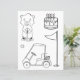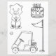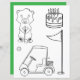 Het prachtige kleurplaat ontwerp beschikt over een schattige gopher naast een verjaardagstaart, golfkar, golfpin en bal. Dit coördinerende ontwerp past perfect bij de uitnodigingsset.