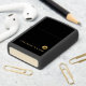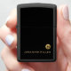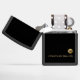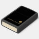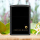 Een minimalistisch monogrammeontwerp met klassieke blokmonogram typografie-initialen op een geborsteld metalen goudembleem met een gepersonaliseerde naam hieronder op een eenvoudige zwarte achtergrond. Perfect accessoire of aangepast cadeau voor elke gelegenheid.