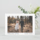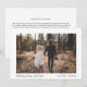 Minimale moderne huwelijksreis-aankondigingskaart om familie en vrienden te laten weten dat je trouwplannen veranderd zijn en dat je op weg bent. Op de voorzijde staat je trouwfoto: "Niets fancy, gewoon liefde" (je kunt dit personaliseren naar "We Eloped", gewoon getrouwd, etc.) en je voornamen. Aan de andere kant moet u uw boodschap meer in detail uitdragen, inclusief alle feestelijkheden die op een later tijdstip zullen worden gehouden, en uw handtekening onder de heer & mevrouw toevoegen.