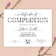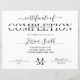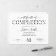 Minimalistische certificaatuitspraak in wit en zwart, perfect voor voltooiingscertificaten voor welkome salon-cursussen. U kunt dit moderne certificaat van prestatiesontwerp met elegant manuscriptdoopvont voor om het even welk type van diploma ook gebruiken. Deze eenvoudige beroepstitel biedt een moderne doorsnede van brieven en een stijllettertype voor de kalligrafie, waardoor een mooi certificaat van het voltooiingsontwerp wordt gemaakt.