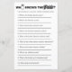 Maak uw vrijgezellenfeest of vrijgezellenfeest onvergetelijk met dit leuke en interactieve "Who Knows the Bride?" spel! Met een chique zwart-wit ontwerp met elegante verlovingen ringillustraties, is dit spel ideaal voor bruidsfeestjes, bruidsfeesten en vrijgezellenfeesten. Gasten zullen een knaller hebben bij het raden van de favorieten van de bruid, van films en muziek tot droomvakanties en celebrity crushes. Print en speel eenvoudig voor een gemakkelijke, boeiende en met gelach gevulde feestactiviteit. Ideaal voor zowel intieme bijeenkomsten als grotere evenementen, dit bruidsdouchespel is een must-have voor elke moderne bruid-to-be! Dit vrijgezellenfeest spel is gemakkelijk op te nemen in uw evenement en werkt goed voor alle leeftijden. Het elegante minimalistische ontwerp vormt een aanvulling op een verscheidenheid aan huwelijksthema's, van modern en klassiek tot rustiek en boho. 📌 Perfect voor: ✔️ Huwelijksrecepties & Cocktail Hour ✔️ Vrijgezellenfeesten & vrijgezellenfeesten ✔️ Verlovingsfeesten & repetitie diners ✔️ Gasttafelactiviteiten & ijsbrekers 🎉 Voltooi het Collectie! Combineer deze bruiloft woord zoeken met onze andere bijpassende bachelorette en vrijgezellenfeest games voor een samenhangende en stijlvolle evenement ervaring.
