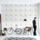 Minimalistisch geïnspireerd bloemenbehang met zacht groen kleurenpalet en minimalistisch ruim gebladerte