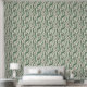 Een kalmerend botanisch patroon met een verscheidenheid aan bladtakken in tinten groen tegen een achtergrond van zachte room. Dit eenvoudige maar elegante ontwerp belicht natuurlijke elementen en creëert een frisse en rustgevende sfeer, ideaal voor op natuur geïnspireerde decoraties en producten. Ideaal voor mensen die houden van minimalistische en organische patronen.