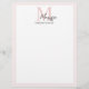Minimalistisch Monogram Initiaal & Naam Pastel Roz Briefhoofd