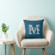 Minimalistisch Script Monogram Naam Blauw & Wit Kussen
