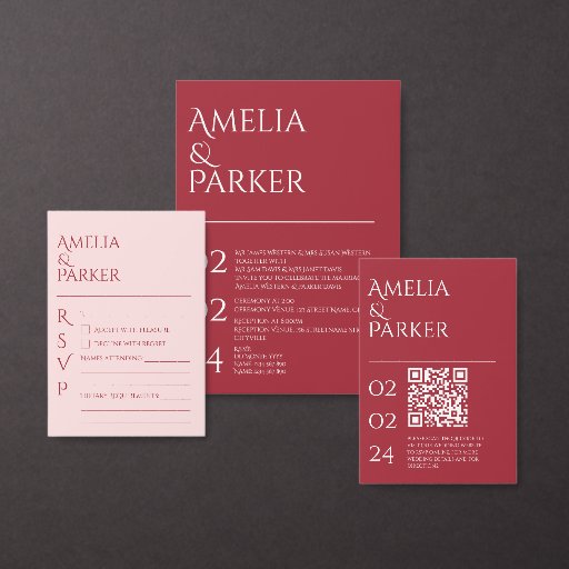 Minimalist Crimson Red Wedding Invitation SuiteOntworpen door Kerry Lowe