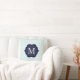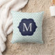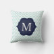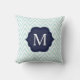 Mint Blauw & Wit Chevron Marine Monogram Ontwerp Kussen