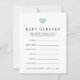 Laat de gasten van het baby shower hun best doen om te gissen naar het geslacht van de baby, de geboortedatum en -tijd, het gewicht en de lengte van de baby! Plaats een stapel bij de ingang aan de gebeurtenis, ga hen rond, of verlaat bij elke plaats het plaatsen. Maakt ook een leuk hoepenbelang voor de moeder-te-zijn, wanneer gecompileerd in een doos of een multomap. Het ontwerp is voorzien van een pastelmunt met groen hart bovenaan met een moderne zwarte letters en een munt- en witte streep aan de achterzijde.
