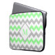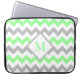 Mint Green Grey Chevron Pattern Monogram Laptop Sleeve