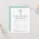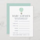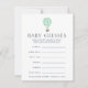 Laat de gasten van het baby shower hun beste gistijnen nemen op de geboortedatum en -tijd, het gewicht en de lengte van de baby! Plaats een stapel bij de ingang aan de gebeurtenis, ga hen rond, of verlaat bij elke plaats het plaatsen. Maakt ook een leuk hoepenbelang voor de moeder-te-zijn, wanneer gecompileerd in een doos of een multomap. Genderneutraal ontwerp is voorzien van een pastelmunt met groene waterverf heteluchtballon bovenaan met moderne letters en een subtiel gestippeld diamantpatroon aan de achterzijde.