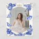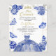 Leg de essentie van uw Quinceañera viering vast met onze tiara en vlinders-thema foto-uitnodigingen. Creëer magische herinneringen met waterverf design koningsblauwe bloemenversieringen verweven met sprankelende confetti, allemaal gehuisvest in een modern geometrisch lijst. Deze betoverende uitnodigingen zetten de toon voor een onvergetelijke mijlpaalviering.