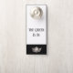 Cet affichette de porte est double face et couronné d'une couronne argentée au fond. Bordures supérieures entourées d'une bordure gris argenté avec un exemple de texte de "La Reine est dedans". Customisez cet article à votre goût avec la couleur ou l'expression que vous désirez, ou achetez comme prévu.